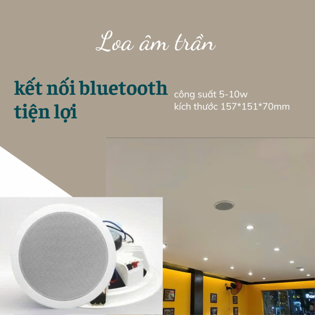 Thời đại công nghệ không dây lên ngôi, nhu cầu về một hệ thống âm thanh vừa đẹp mắt, dễ lắp đặt, vừa linh hoạt trong kết nối ngày càng được người dùng cá nhân, doanh nghiệp và các công trình xây dựng hiện đại quan tâm. Loa âm trần Bluetooth là lựa chọn thông minh, kết hợp hài hòa giữa thẩm mỹ kiến trúc và trải nghiệm âm thanh hiện đại.